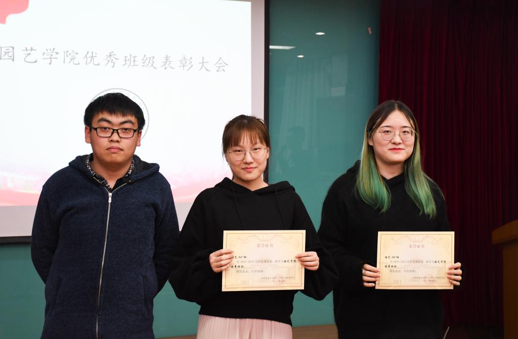 大会伊始,赵瑞宣读表彰决定,获表彰的优秀班级有:园艺182班、园艺184班、园艺171班、茶学171班、园艺163班、园艺162班、茶学151班。随后,赵瑞和褚阳阳为获奖班级颁奖。