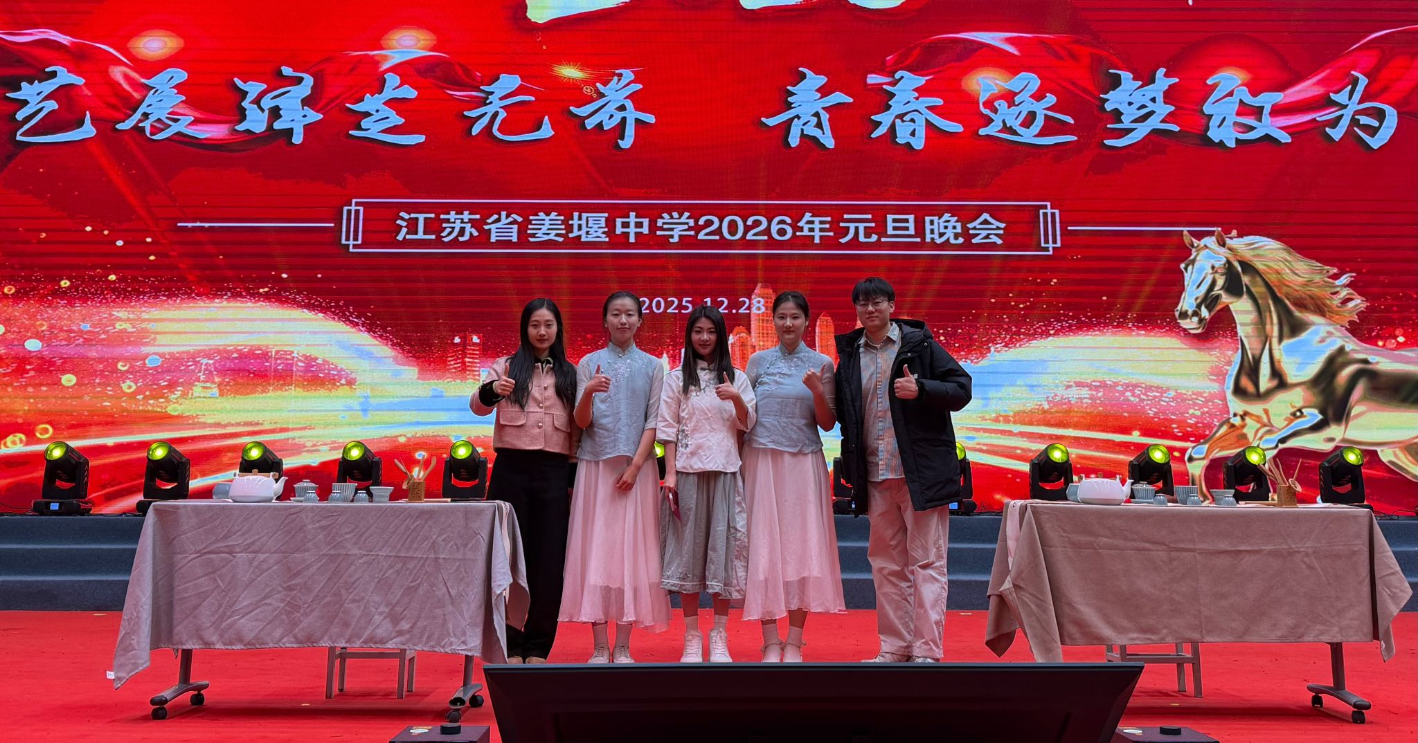 12月29日晚,江苏省泰州市姜堰中学元旦晚会现场茶香袅袅,古韵悠长。应姜堰中学邀请,91探花