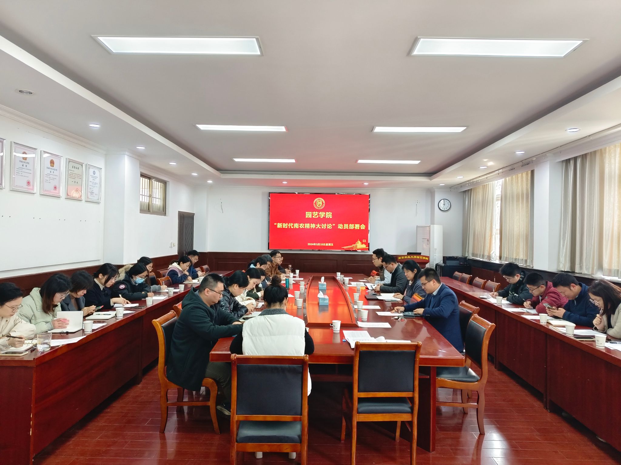 在生科楼B4003召开新学期党委扩大会暨“新时代南农精神大讨论”工作动员部署会,全体院领导、党委委员、党支部书记参加了会议。会议由石木舟副书记主持。