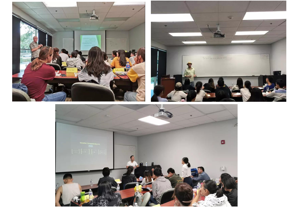在未来近20天的时间里,同学们将学习美国的创业精神、创业公司营销、电子商务、国际贸易中的跨文化交流技巧、创业领导力、设计思维、创新与创业和企业的初始资金等14场讲座。