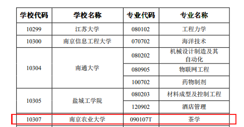 茶学专业增列为学士学位授权专业。