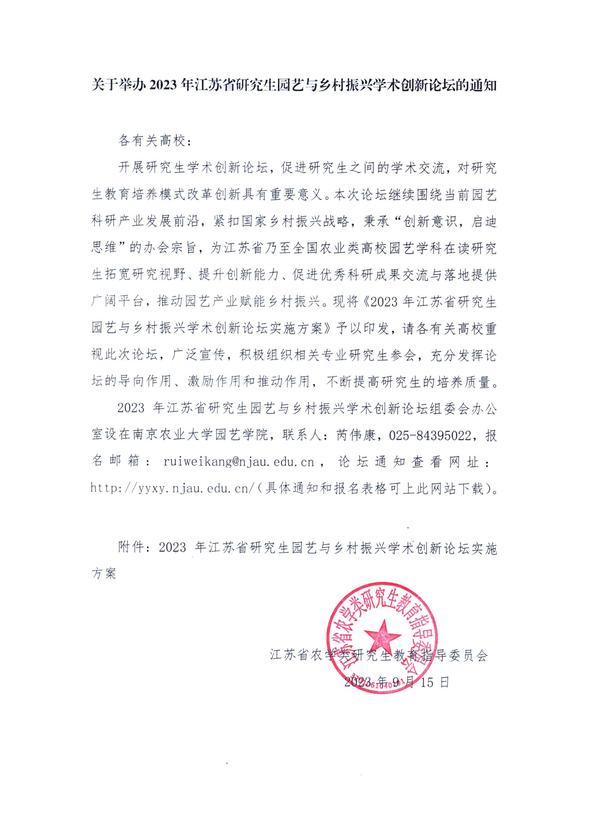2023年江苏省研究生园艺与乡村振兴学术创新论坛由江苏省农学类研究生教育指导委员会主办,91探花