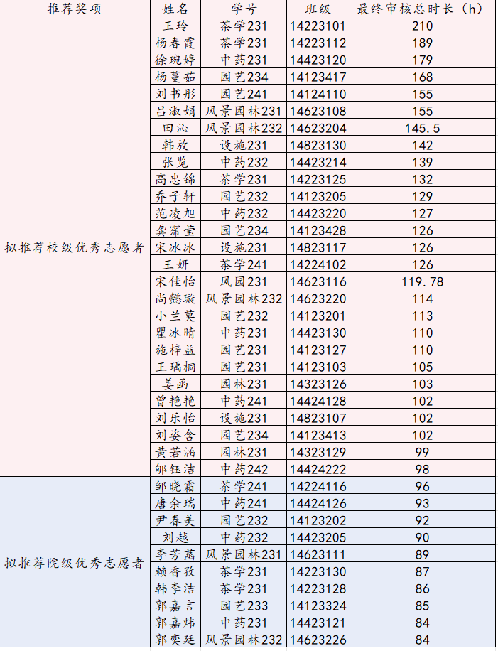 后续如有学院“拟推荐校级优秀志愿者”名单同学由其他申请渠道申请成功,该同学所占学院名额将释放,并在院级优秀志愿者中依次递补。