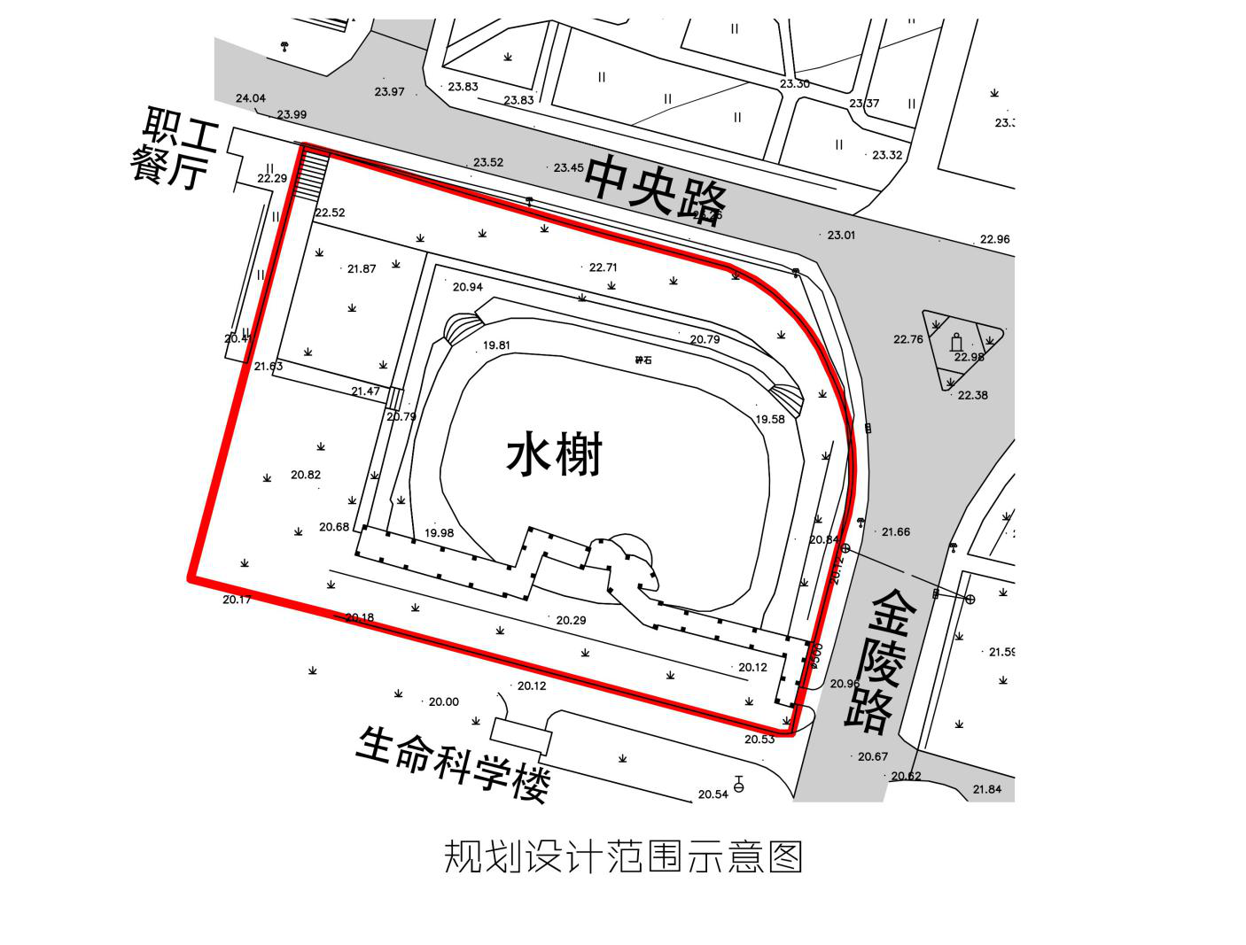 (二)参赛要求:初赛完成生科楼水榭周边场地的设计规划方案,决赛根据初赛设计稿进行5分钟以内的PPT展示汇报。