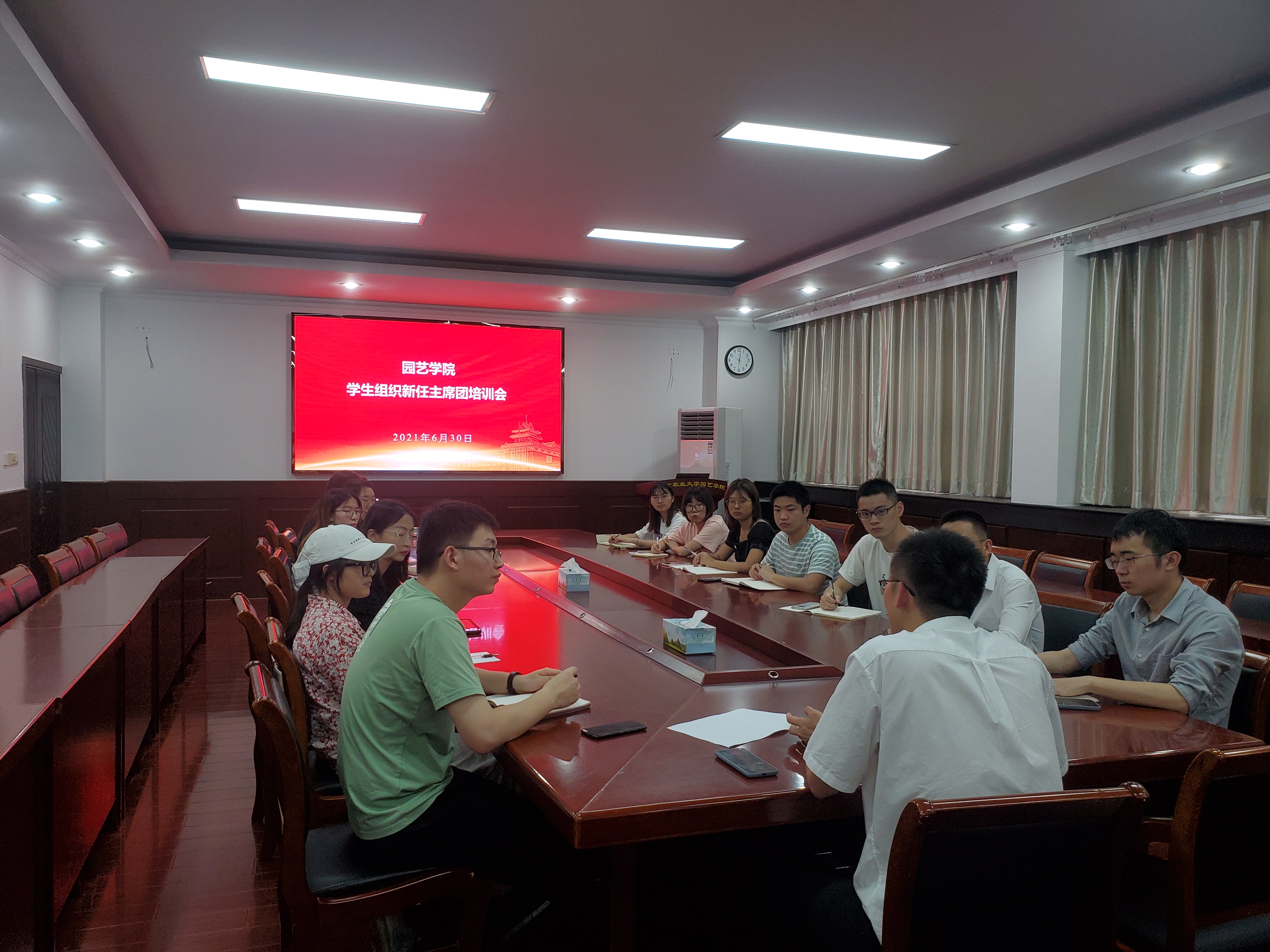 于生科楼B4003开展学生组织新任主席团培训会。学院党委副书记文习成为主讲人,学院辅导员芮伟康、蔡行楷出席本次培训会,院学生组织新任主席团成员全员到场。