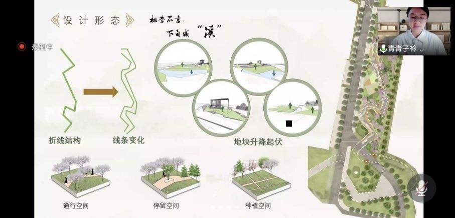 本次景观设计大赛以南农梅林和泰山石区域设计为主题,各小组从区位分析入手,结合场地环境和已有植被条件,提出改造设计方案。“百律五音队”以“知秾记”为题,呼应学校的特色,利用旱溪景观的特点,营造禅意又灵动的氛围感;“青青子衿队”着重分析人群活动占比,促成文化、休闲、生态三合一优化效果;“您说了算队”从区位文化出发,由梅引申到南京古城文化、岁寒三友的精神,并将其融入设计,匠心独具。七个小组不论是ppt汇报还是成果视频展示,都呈现了各自设计特色和人文蕴意,答辩现场也频频收获评委老师的肯定与赞赏。