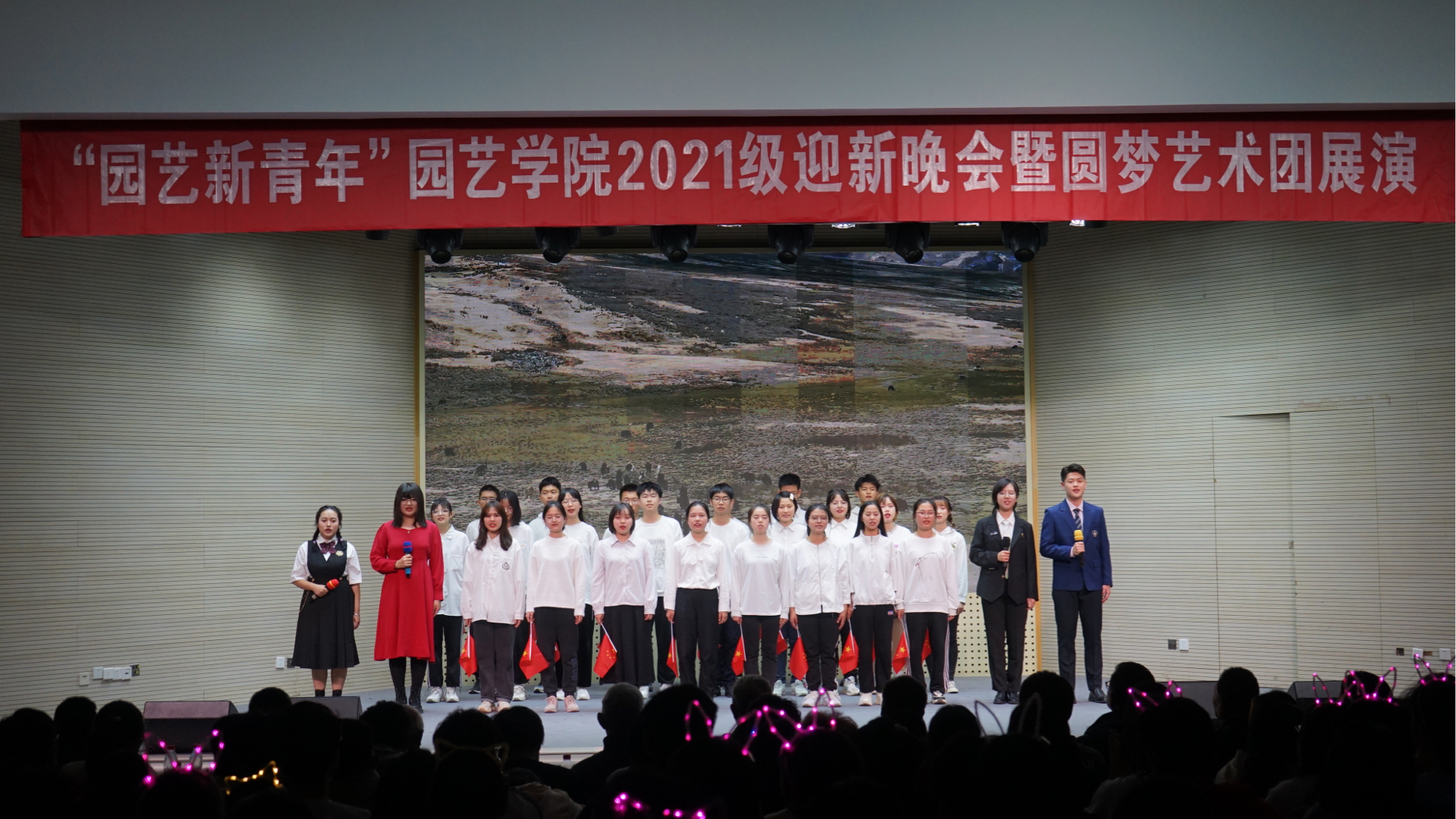 本次晚会为迎接园艺新生的到来画下一个精彩的分号,也预示了园艺新青年将接力吹响时代前进的号角,筑园艺之魂,展青年风貌。仰望历史天空,园艺情怀熠熠生辉;跨越时间长河,园艺青年迎面而来。愿所有园艺新青年在今日的舞台上肆意舞动,在明日的舞台上闪闪发光!