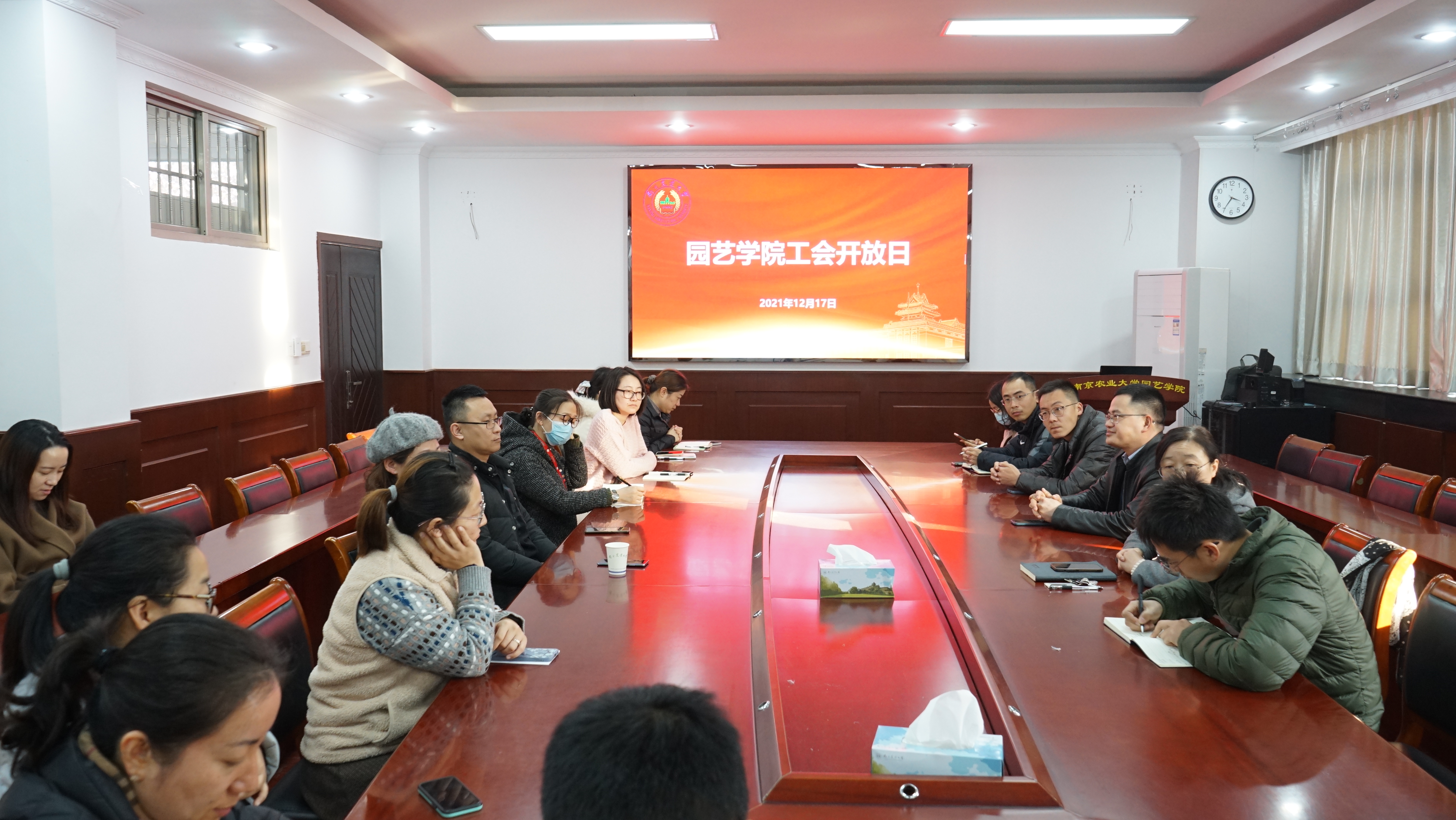 工会致力于服务学院教职员工,充分发挥工会凝心聚力作用。为更好地服务教职员工,提高工会工作水平,学院工会于2021年12月17日下午,在生科楼B4003举办工会开放日活动,活动第一阶段邀请学院党委书记韩键、党委副书记文习成、全体工会委员以及学院工会会员代表参加,第一阶段活动由工会主席唐晓清主持。本次活动主要收集教职工对学院工会工作的意见建议,发现和解决教职工们工作生活困难,持续优化工会服务水平。第二阶段为学院掼蛋比赛2.0,自由组队,促进各课题组老师之间的交流,也为大家提供一次放松身心的机会。