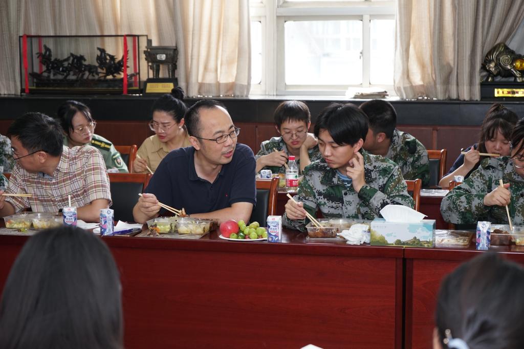 参加完上午的训练,穿着军训服的周添添便受邀来到了学院会议室,今天是她的18岁生日,和她一起赴约的,还有同样是9月过生日的一群老师和同学。一进门,饭菜香、花果香扑面而来,还有早就准备好的蛋糕和月饼,原来,这是91探花