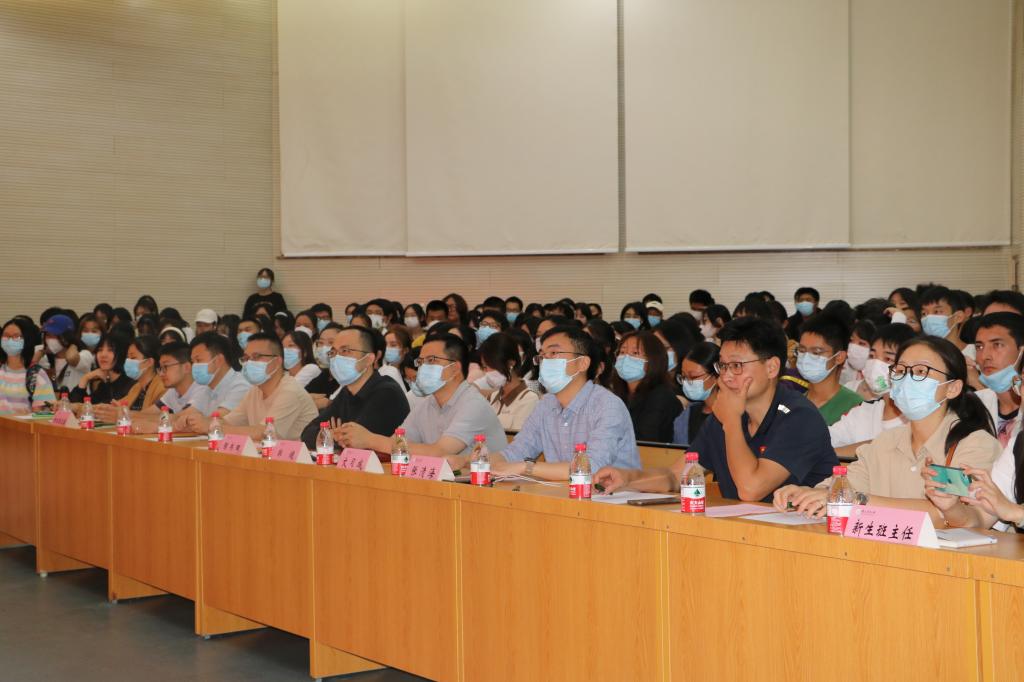 党委书记韩健,副院长张清海,副院长陶书田,新生班主任,本科生辅导员夏丽、鲁月、赵瑞、蔡行楷、李柯,本科生教学秘书陈新及全体2022级新生参加此次大会。会议由学院党委副书记文习成书记主持。