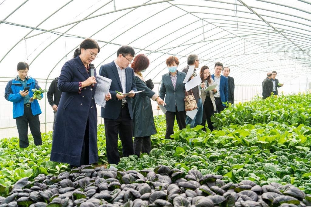 随后,李英教授和曾爱松副研究员带领领导专家来到田间,详细介绍了新品种的生长情况以及特色之处。江苏省农科院科研处叶小梅处长指出,当前农业科技水平的提高使得蔬菜的供应已经能够在一年四季随种随收,均衡上市,且种类、品种类型逐渐丰富;与此同时,消费者也对安全、优质、可口、营养丰富等保健型功能型蔬菜提出了新的需求。本项目的实施将促进我省不结球白菜和甘蓝产业的发展,对提升人们身体健康和生活质量具有十分重要的意义。蔬菜研究所赵统敏所长表示,通过本项目的联合攻关,将进一步提高我省不结球白菜和甘蓝的育种水平,促进江苏省特色功能性不结球白菜和甘蓝新品种的领先地位。