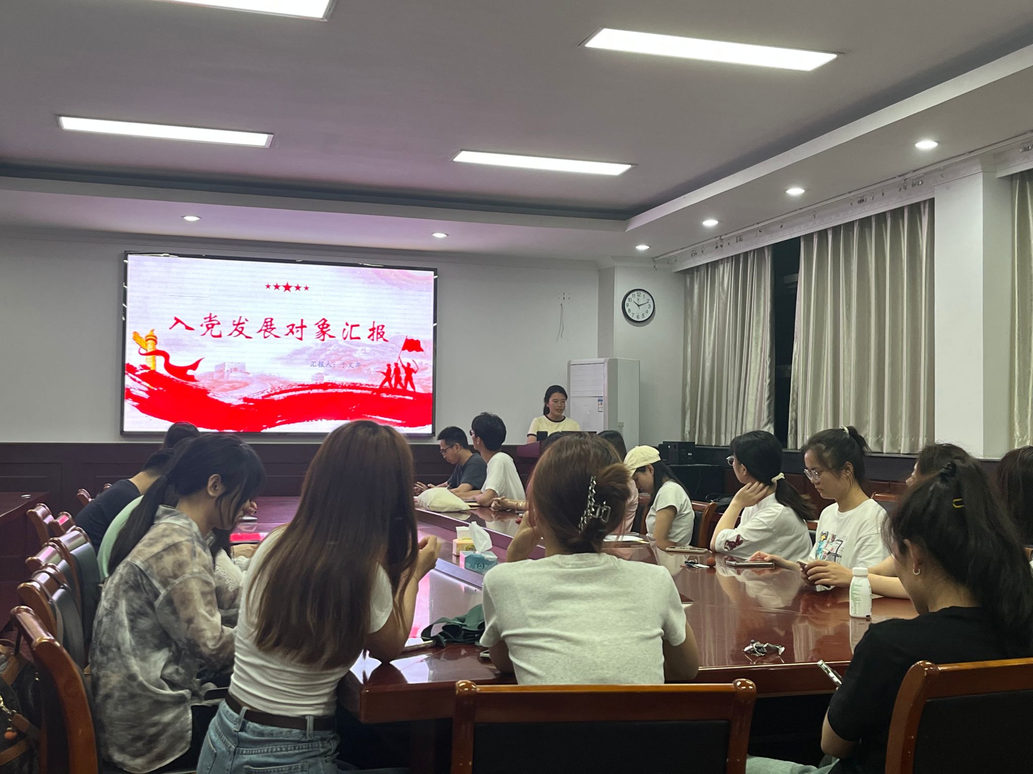 本次大会主要讨论接收发展对象娄婧婧和于文华两名同志为中共预备党员相关事宜,会上,两名发展对象向党组织汇报了对党的认识、入党动机及有关情况。入党介绍人分别介绍了两位同志的考察情况和对其入党的意见。