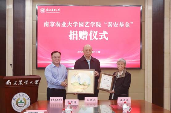 党委书记韩健表示,两位校友均是工薪阶层,几十年如一日勤勉工作、奋发作为,崇尚简朴,勤俭节约,在各自的工作岗位取得了突出成绩、做出了重要贡献,生动践行了“诚朴勤仁”的校训精神。他们一直心系母校、感恩母校培养和老师教诲,本次在学校设立“秦安基金”,慷慨无私捐赠,回馈母校,为师生、校友树立了榜样,传递了巨大的爱校荣校能量。学院一定以两位校友为榜样,在学校的正确领导下、在广大校友的支持帮助下,奋发图强、锐意进取,努力培养卓越园艺人才、创新园艺科技成果、服务城乡居民高品质生活,实现园艺让生活更美好的奋斗目标。