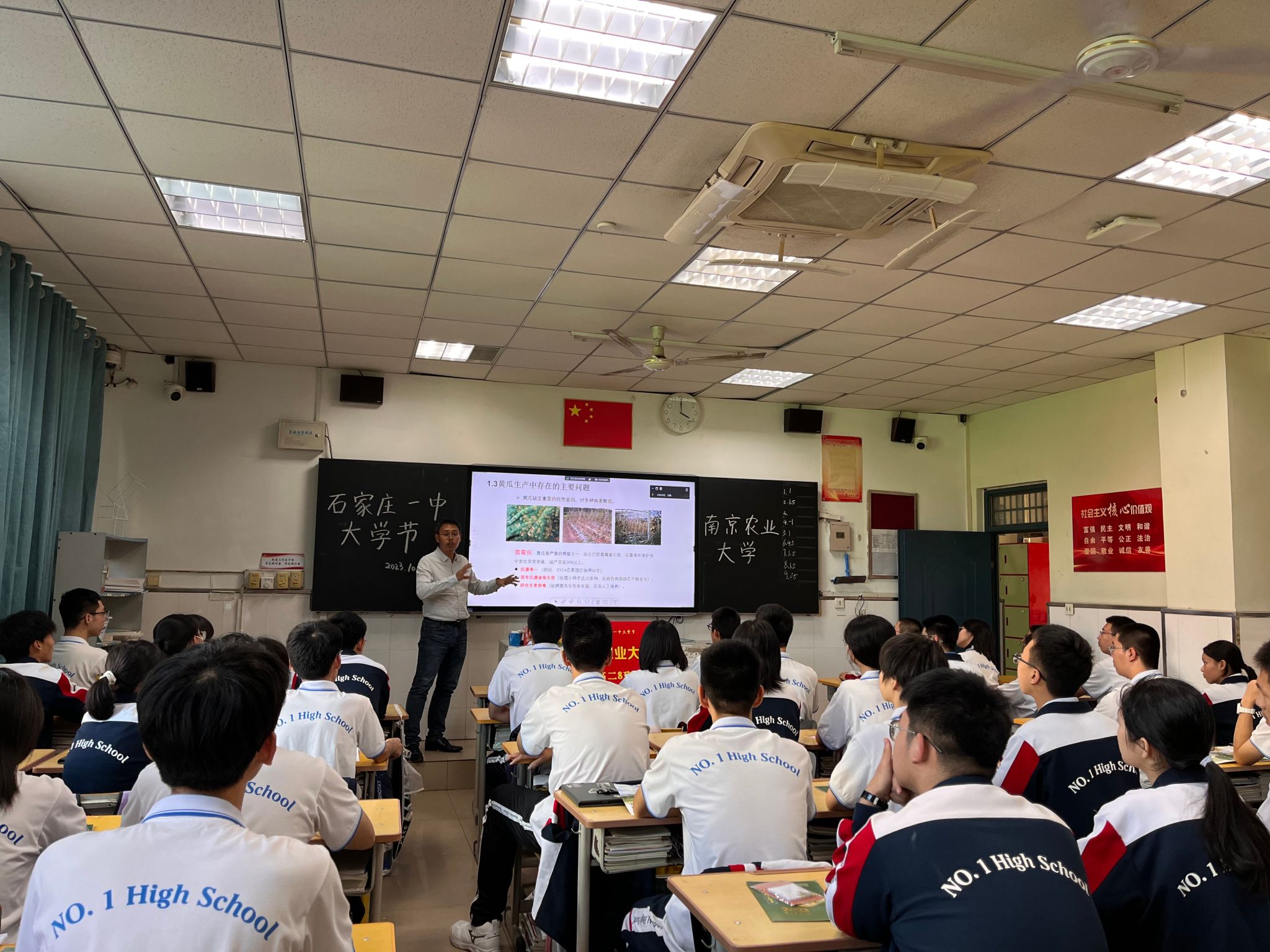 李季教授为石家庄一中的同学们开展关于黄瓜的三个科学故事科普讲座,从黄瓜的起源与未来、植物工厂与单性结实、人工肌肉纤维与卷须三个科学故事引入,引导同学们善于发现身边的科学问题,学会用科学的眼光看待问题。并向同学们阐述了现代农业并非传统意义上的农业,而是通过高新尖技术实现农业的更多可能性,提高同学们对现代农业的认识,激发对农业和生命科学的学习兴趣。