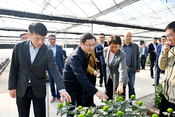湖熟菊花研发展示基地考察。滁州市委副书记金力,市政府秘书长王燕永,南谯区委副书记、区长王莹,市农业农村局局长程军才等参加考察。91探花