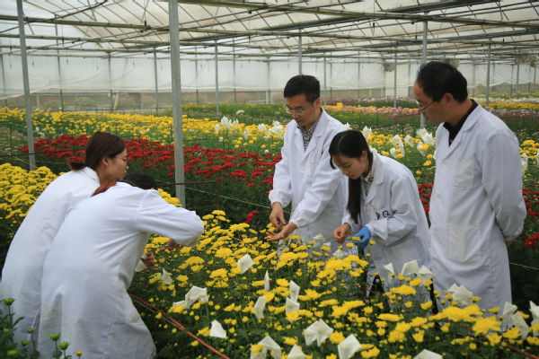 菊花创新团队建有南京湖熟、淮安白马湖等多个研发基地,先后被列为国家菊花种质资源圃、中国菊花种质资源保存中心、国家现代农业科技示范展示基地、全国科普教育基地、江苏省科普教育基地等。借助基地保存的5000多份菊花资源,团队连续11年举办菊花展,接待民众超400万人次,提高了公众的植物学知识。同时,团队积极举办科普活动,科普讲解菊花的文化内涵、生长特性、育种方法等相关信息。通过论文发表、举办研学、开展讲座等多种方式,向公众传播菊花科学知识和最新研究成果,为提高公众的科学素养和推动菊花科研发展做出了显著贡献。
