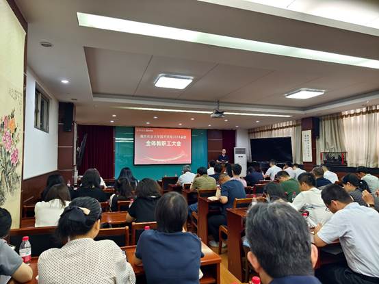 召开2024上半年学期末全体教职工大会。学院领导班子成员及全体教职工参加会议,会议由学院党委书记姚志友主持。