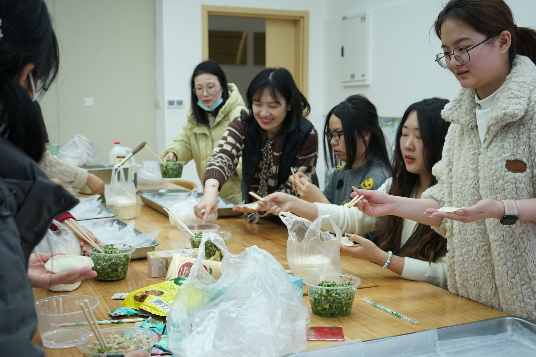 座谈会结束后,师生们共同参与了包饺子、写春联福字等活动。大家分工合作,在欢声笑语中,传递了节日的喜悦,更凝聚了师生间的深厚情谊。最后师生们围坐在一起,品尝着亲手包的饺子,互赠着亲手写的春联福字,分享着2024年的生活点滴和2025年的希望憧憬,感受着“园艺家文化”的温暖与节日的欢乐。