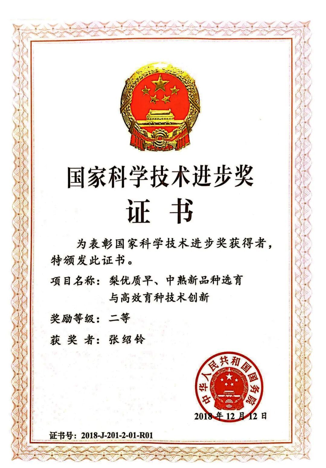 团队以第一完成人获国家科技进步二等奖2项、部省级一等奖4项,推动我国梨研究实现从跟跑到领跑的跨越发展,为世界梨产业科研贡献中国智慧。