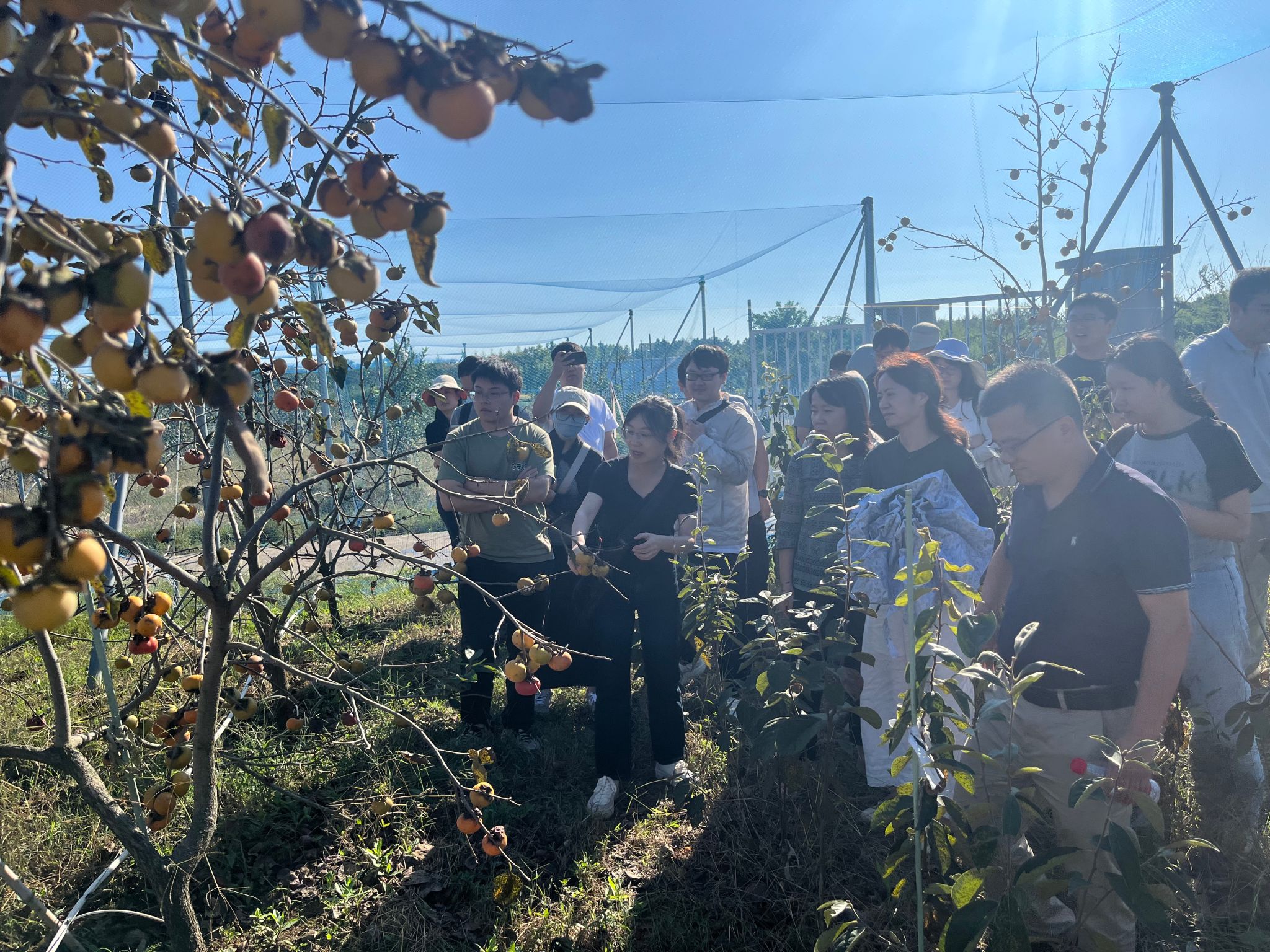 在余心怡老师的带领下,新教师们首先参观了柿子基地,了解了相关科研进展与产业应用。