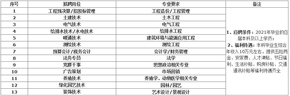 薪酬福利:公司坚持以人为本,关爱员工,关心员工成长,努力实现人企共同发展。新入职本科毕业生综合年收入10万元左右,提供五险两金、安家费、人才津贴、节日福利、生活补贴、购房补贴、交通通讯补贴等福利待遇齐全。