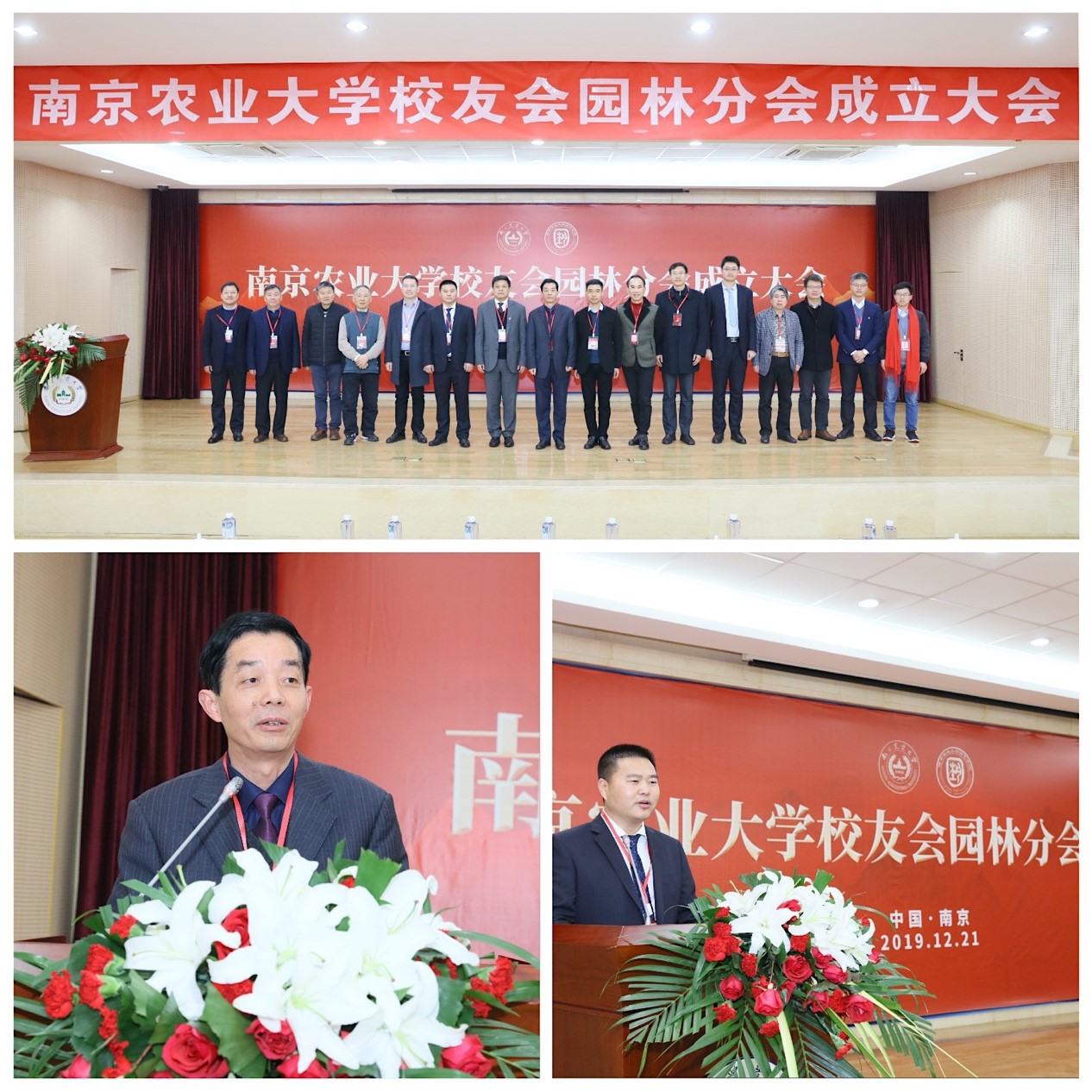 校友会园林行业分会理事会组成人员及分工的批复》文件。随后,园林分会理事会成员代表登台与参会校友见面。首任会长、00级园艺专业校友徐鹏代表园林行业分会理事会作表态发言,介绍了园林行业校友分会今后的任务和工作思路。他希望大家形成紧密团结的“南农园林共同体”,关心支持南农园林学科的建设与发展,携手助力母校和校友事业蓬勃发展。
