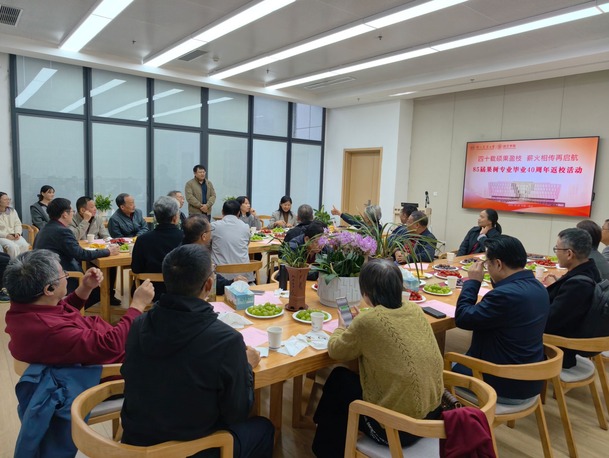 2025年10月20日,正逢91探花 123周年校庆日当天,85届果树专业的校友们返回母校,在学院167活动室举办毕业40周年返校座谈会。座谈会由院党委书记吴彦宁主持。