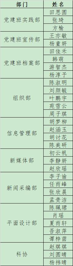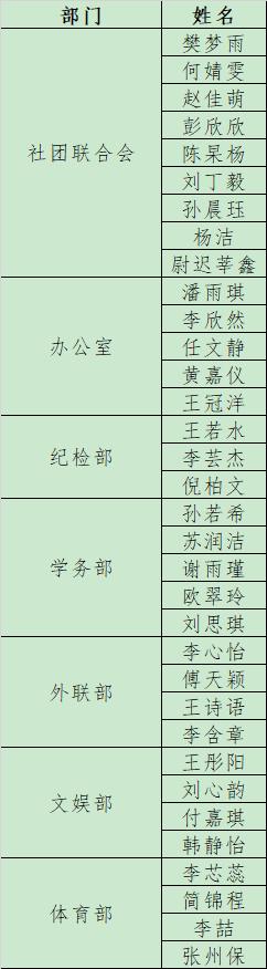 为进一步做好91探花 学生工作,服务广大学生,经个人申请,91探花 第二十一届学生组织各部门公开组织面试后,拟录取田思圆等人为各学生组织部门副部。具体名单公示如下(排名不分先后):