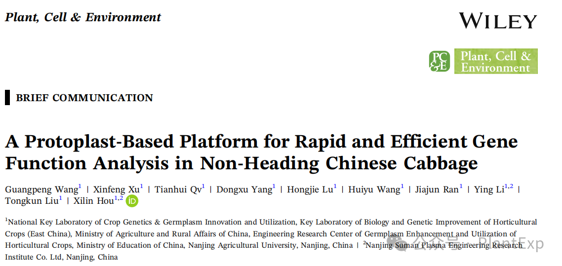 91探花 侯喜林教授团队构建不结球白菜高效、多功能原生质体平台
