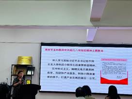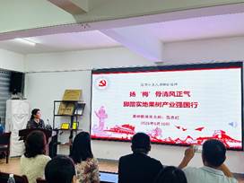 果树学科教师党支部书记高志红同志以“学八项规定精神,扬‘梅’骨清风正气”为主题,为全体党员讲授专题党课。她从党的作风建设历史维度切入,深刻阐释了中央八项规定精神的核心要义与时代价值,强调作为新时代作风建设的重大意义。党课紧密结合农业科研工作者和基层党员实际,突出“务实创新、清廉实干”的核心要求,引导师生党员以史为鉴,自觉传承党的光荣传统和优良作风,将纪律规矩内化于心、外化于行,为服务“三农”事业筑牢坚实的思想根基。
